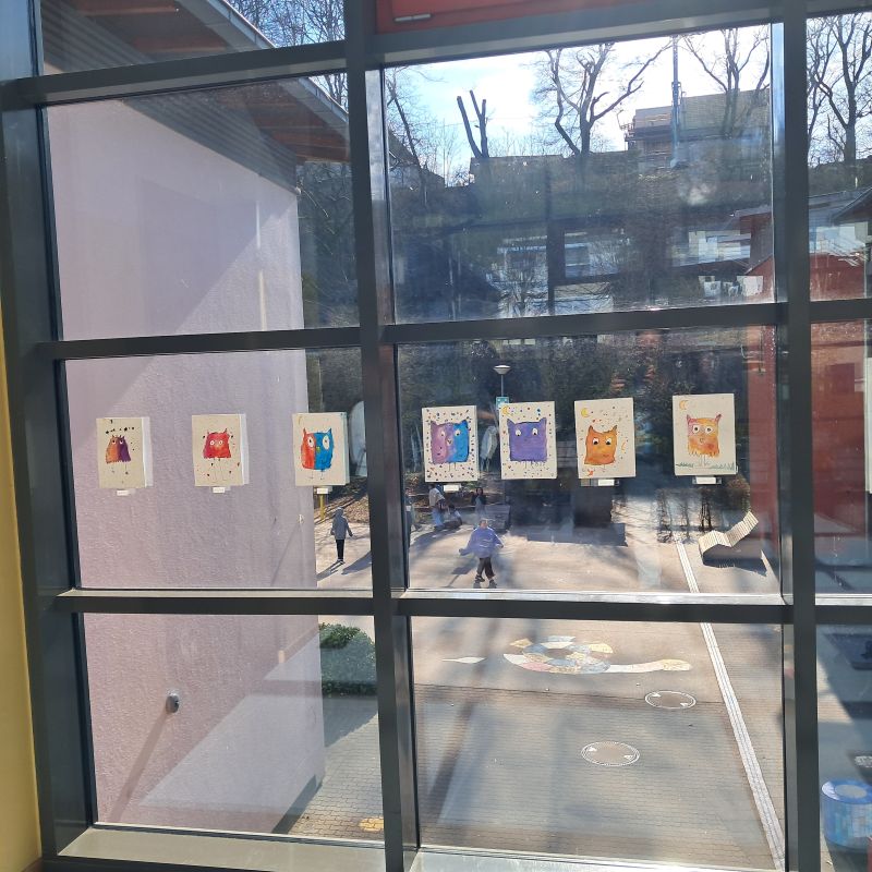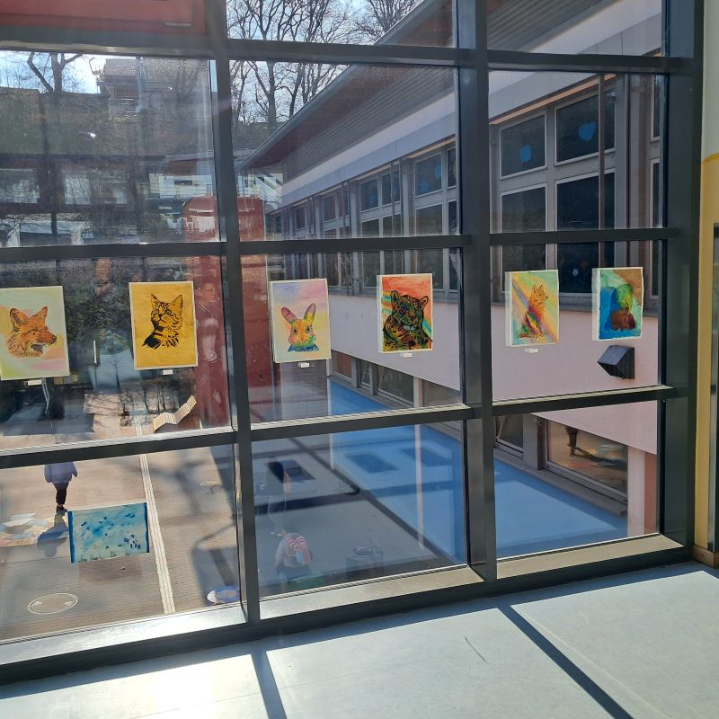 Im Mittelpunkt standen vor allem bunte Tierbilder. Ergänzt wurde die Ausstellung durch großartige Leinwände, die von den älteren Schülerinnen und Schüler individuell gestaltet wurden.