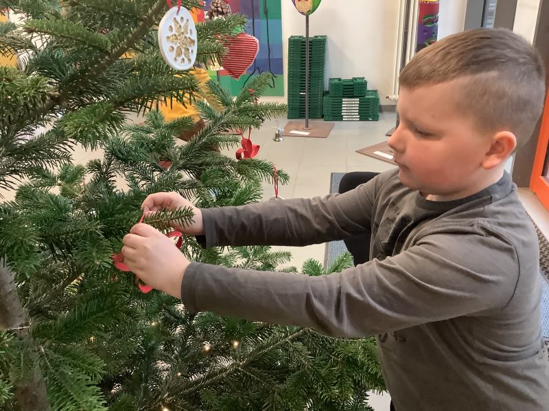 In der vergangenen Woche hat sich die Klasse S1b auf die Adventszeit eingestimmt. Mit viel Freude verwandelten die Schülerinnen und Schüler den Eingangsbereich der Schule in einen festlichen Ort: Gemeinsam wurde der große Tannenbaum geschmückt, der nun alle Besucherinnen und Besucher willkommen heißt.