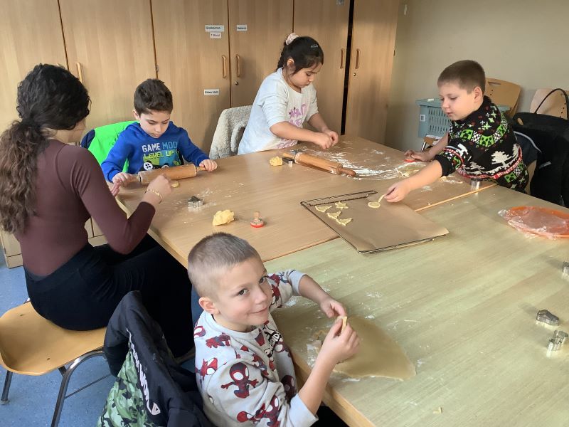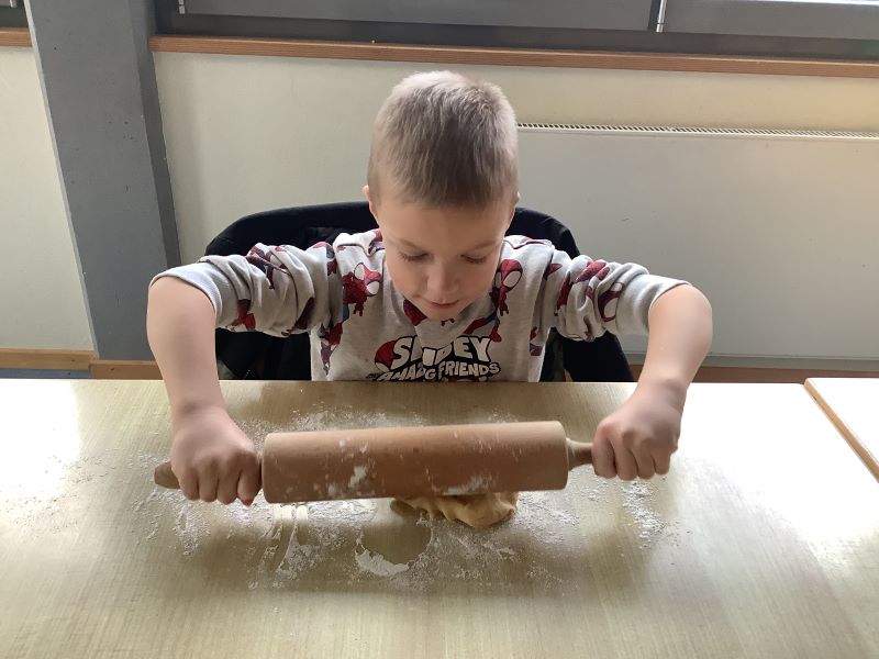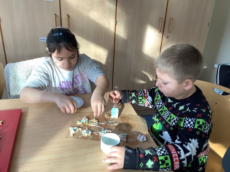 Auch in der Küche wurde es adventlich. Beim Plätzchenbacken erfüllte köstlicher Duft das Schulhaus. Rechtzeitig zum 1. Dezember wurde außerdem das erste Tütchen des Adventskalenders in der Klasse geöffnet.